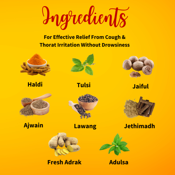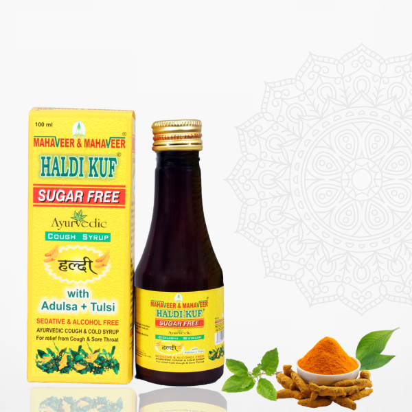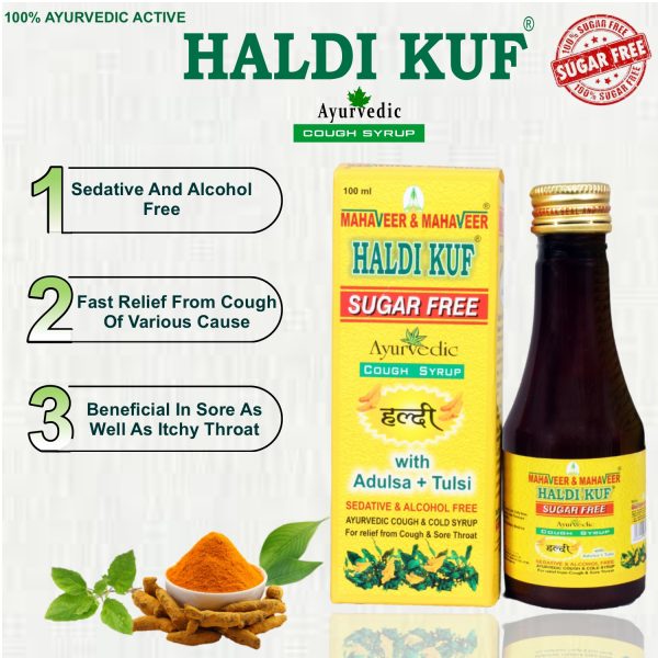 Haldikuf Cough Syrup is a triple action formula ayurvedic cough syrup with combination of Haldi + Adulsa + Tulsi and many more ayurvedic herbs which provides quick relief from cough without causing drowsiness.