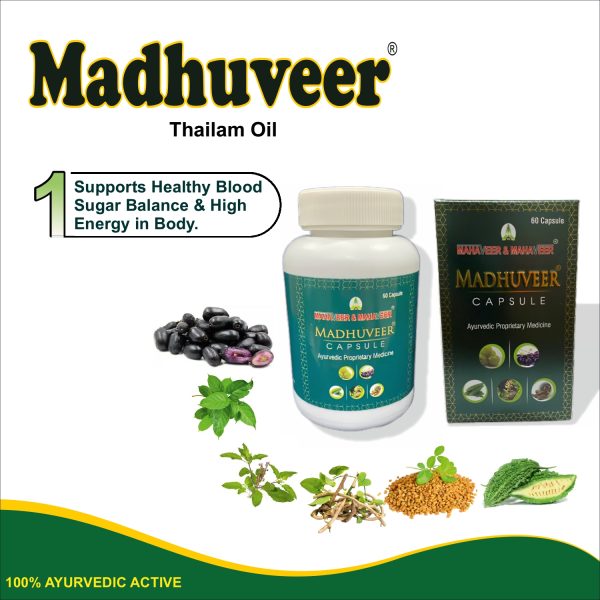Madhuveer Capsule is an 100 % Ayurvedic Medicine which supports Healthy Blood Sugar Balance & High Energy in Body.