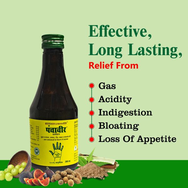Panchaveer Suspension provides potent and enduring relief from common digestive issues like gas, acidity, vomiting, nausea, bloating, and loss of appetite. Its effectiveness addresses these discomforts comprehensively, offering lasting relief for digestive distress.